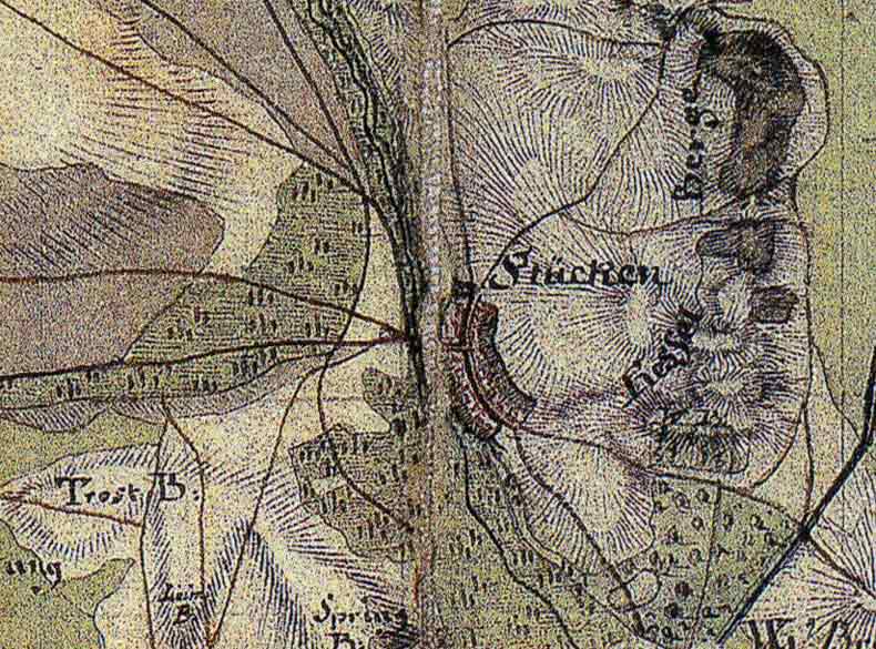 Vergrößerter Aussschnitt aus dem Blatt "89-Belitz" im Maßstab 1 : 50 000. Das Schmettauische Kartenwerk entstand in Preußen von 1767 bis 1787 unter maßgeblicher Mitwirkung von Friedrich Wilhelm Karl Graf von Schmettau. Das Kartenwerk ist das erste voramtliche Kartenwerk in Preußen. Die einzelnen Blätter sind handgezeichnete Unikate.